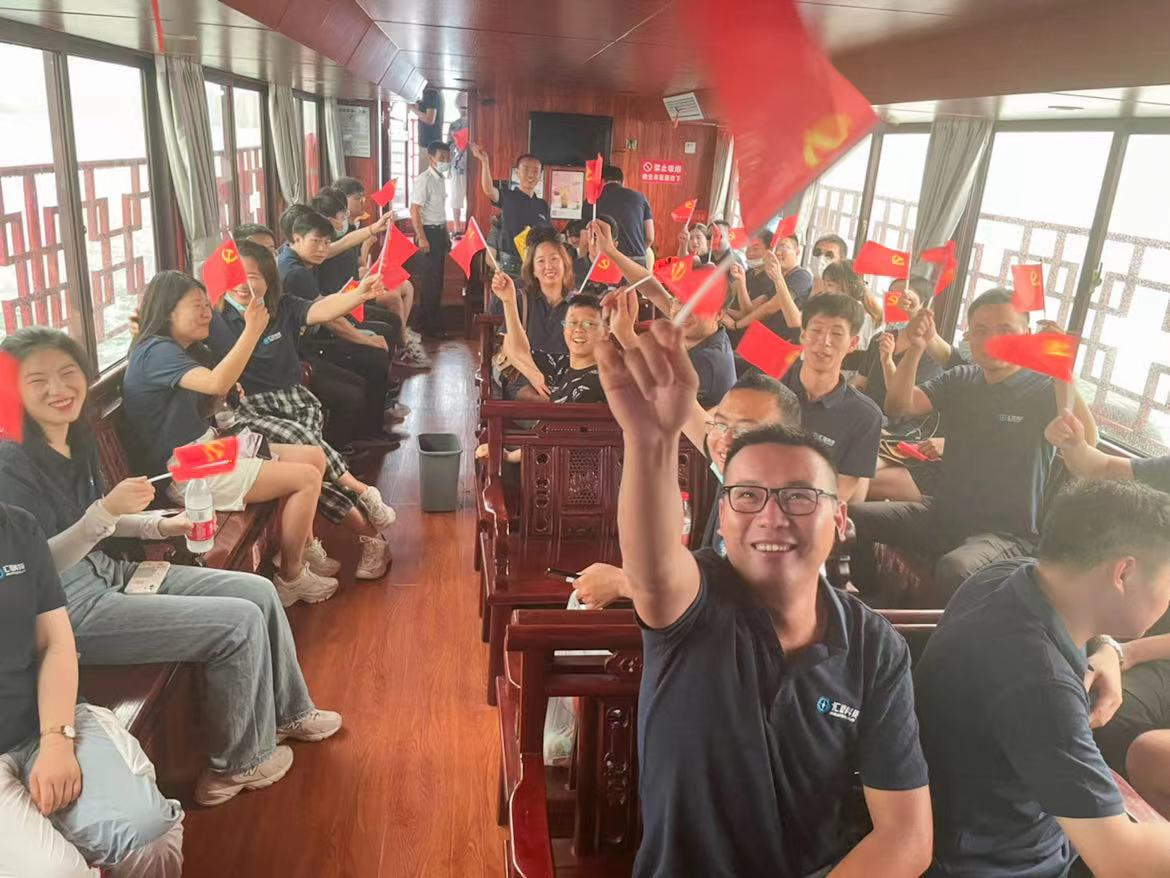 7月4日,小伙伴们早早集合,一起出发登船,拉开了团建的帷幕。太平湖介于黄山、九华山之间,是不可多得又名副其实的“天然氧吧”。两个多小时的游船活动,湖光山色尽收眼底。青山起伏连绵,岛屿散落如珠,我们高举党旗,在一阵阵欢声笑语中一览太平湖风光,各部门同事之间相互交流、拍照留影,忘却了所有的烦恼,享受这一刻的风景与静然。